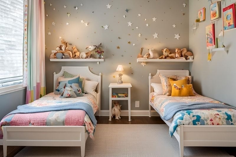 - Duvar Rafları: Kitaplar ve oyuncaklar için fazladan depolama alanı yaratır.