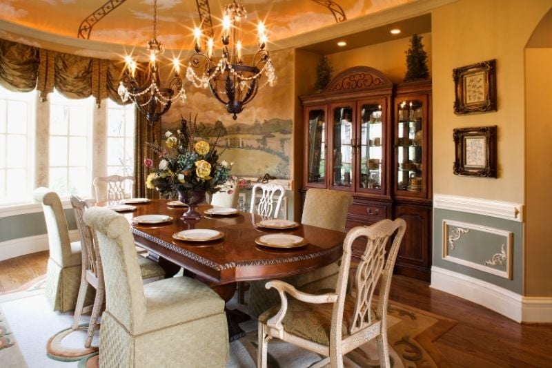 Yemek masası, koltuklar ve diğer ürünlerin olduğu salon salomanjede çok fazla zemin dekoru kullanmamaya dikkat edebilirsiniz.