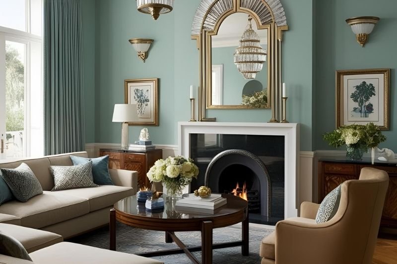 - Malzemeler: Mermer, lake ahşap, cam ve pirinç gibi lüks ve parlak malzemeler.