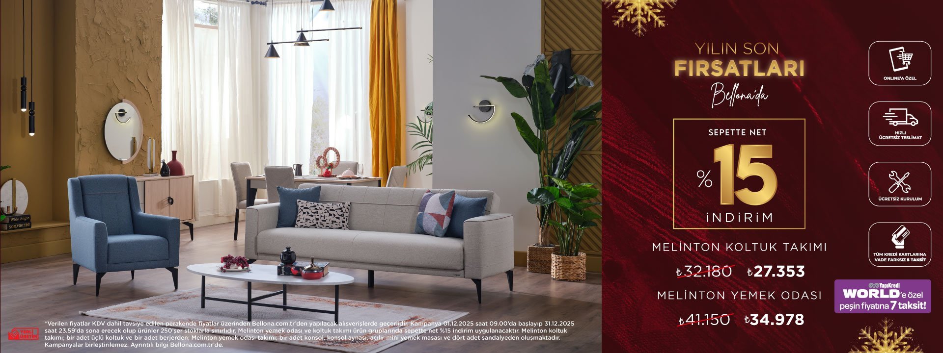 Anında indirim kampanyası Bellona mağazalarında ve online satışlarda geçerlidir.