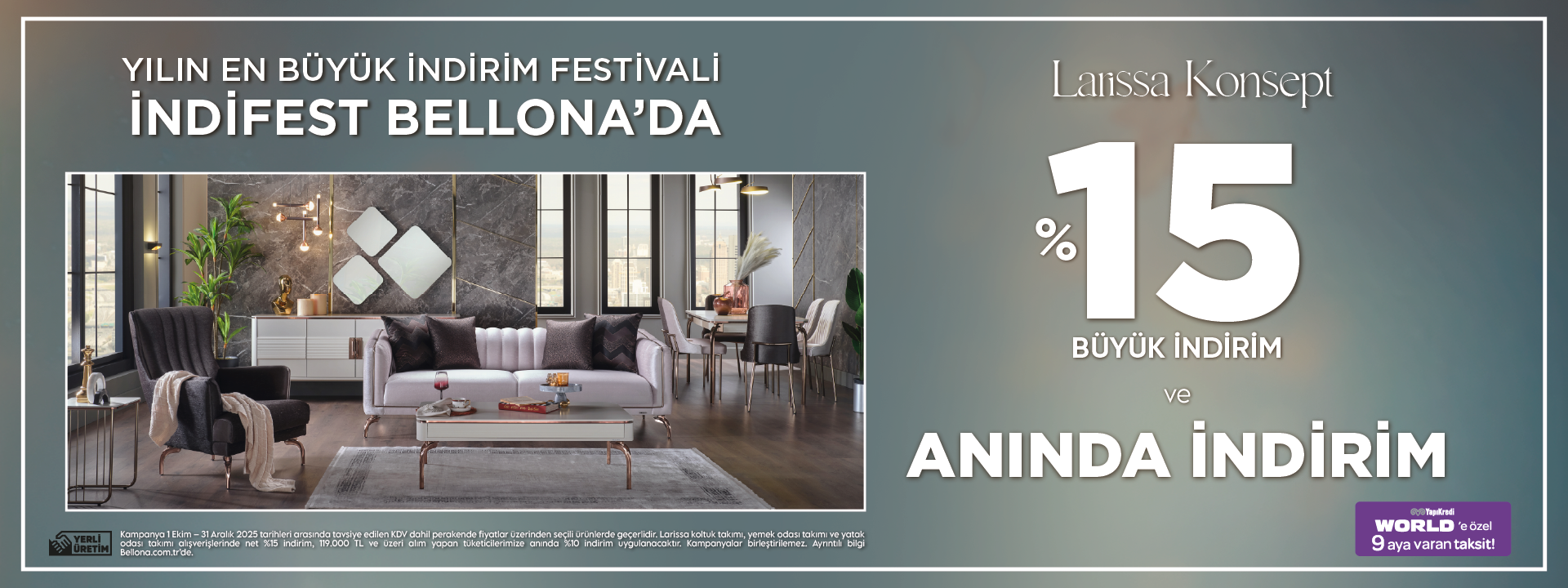 Kampanya 01 Ekim-31 Aralık 2025 tarihleri arasında tavsiye edilen KDV dahil perakende fiyatlar üzerinden seçili ürünlerde geçerlidir. Larissa ve Veronica konseptlerde %15 indirim uygulanmıştır. Bu indirimlere ek olarak;