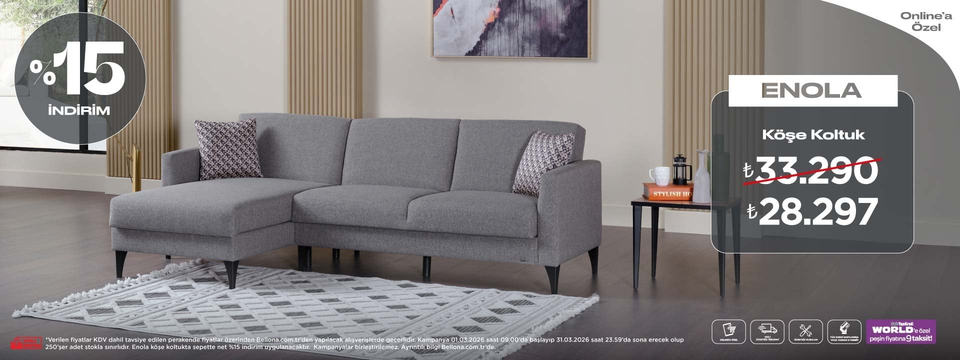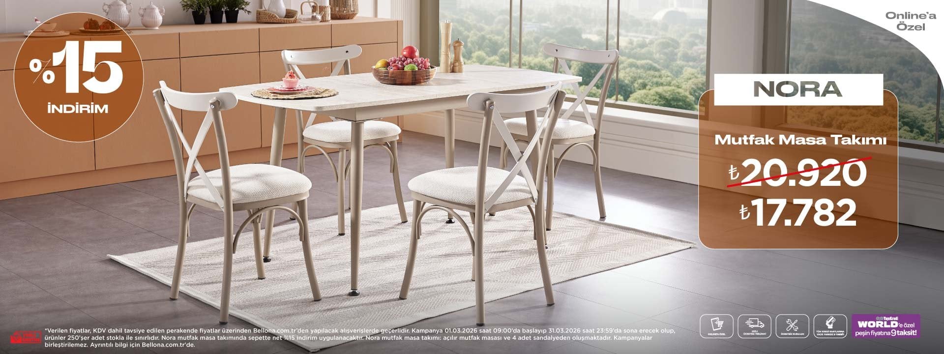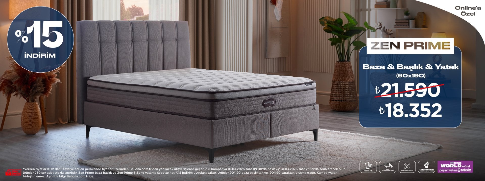Kampanya 1 Ocak- 31 Mart 2026 tarihleri arasında tavsiye edilen KDV dahil perakende fiyatlar üzerinden geçerlidir. Bellona bayileri ile Tom Bank ve Taxit tüketici finansmanı kuruluşları arasında alışveriş kredisi anlaşması yapılmıştır.