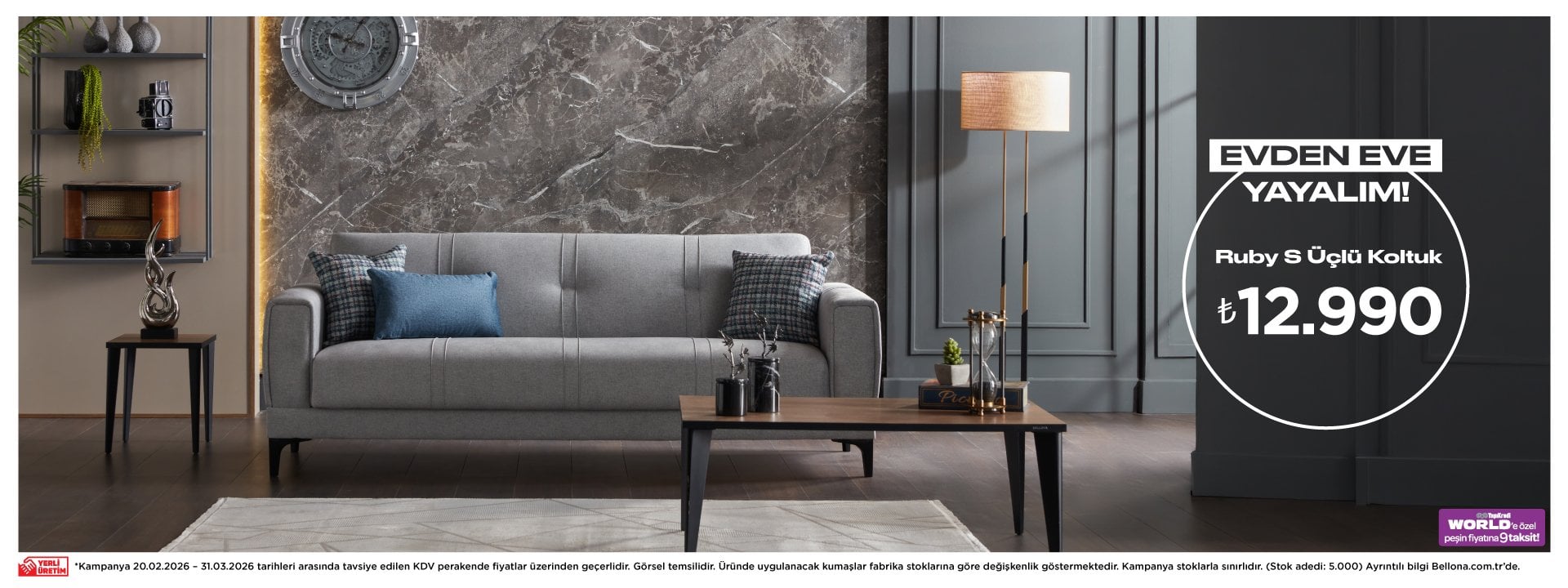 Kampanya 20.02.2026 – 31.03.2026 tarihleri arasında tavsiye edilen KDV perakende fiyatlar üzerinden geçerlidir. Görsel temsilidir. Üründe uygulanacak kumaşlar fabrika stoklarına göre değişkenlik göstermektedir. Kampanya stoklarla sınırlı olup, stok adedi 5.000'dir.