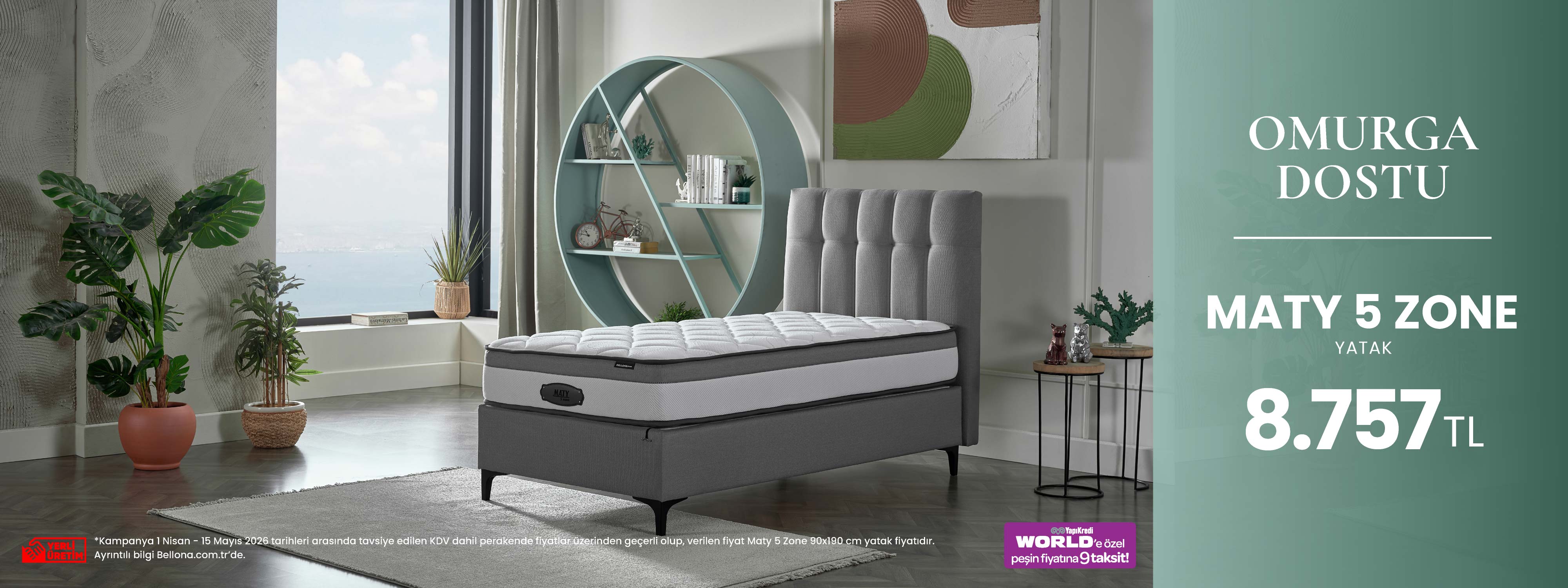 Kampanya 1 Nisan - 15 Mayıs 2026 tarihleri arasında tavsiye edilen KDV dahil perakende fiyatlar üzerinden geçerli olup, verilen fiyat Maty 5 Zone 90x190 cm yatak fiyatıdır.