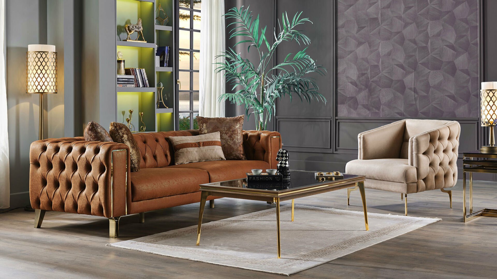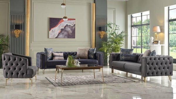 Modern chester tarzı ile göz dolduran Montego, vizon ve kiremit renkli koltukları ile oturma odası dekorasyonlarınıza bambaşka bir hava katmaya geliyor. Özgün bir tasarıma sahip altın sarısı yüksek ayakları, dekoratif kırlentleri ve el kapitone döşemeleri ile bu model, kullanıcıların favorilerinden biri olmayı başarıyor. Ayrıca Montego, kolayca temizlenebilen yumuşak dokulu kumaşı ile de beğeni görüyor. İhtiyaç durumunda yatak haline getirerek de kullanabileceğiniz bu takımı, konumlandıracağınız alanın büyüklüğüne göre ikili koltuk veya üçlü koltuk opsiyonlarından biri ile tercih edebilirsiniz.